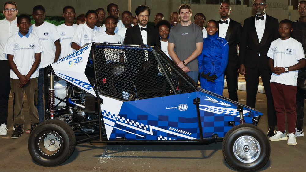 El presidente de la FIA, Mohammed Ben Sulayem, y el tetracampeón mundial de la Fórmula 1, Max Verstappen, posaron junto a un Carcross en Kigali, Ruanda